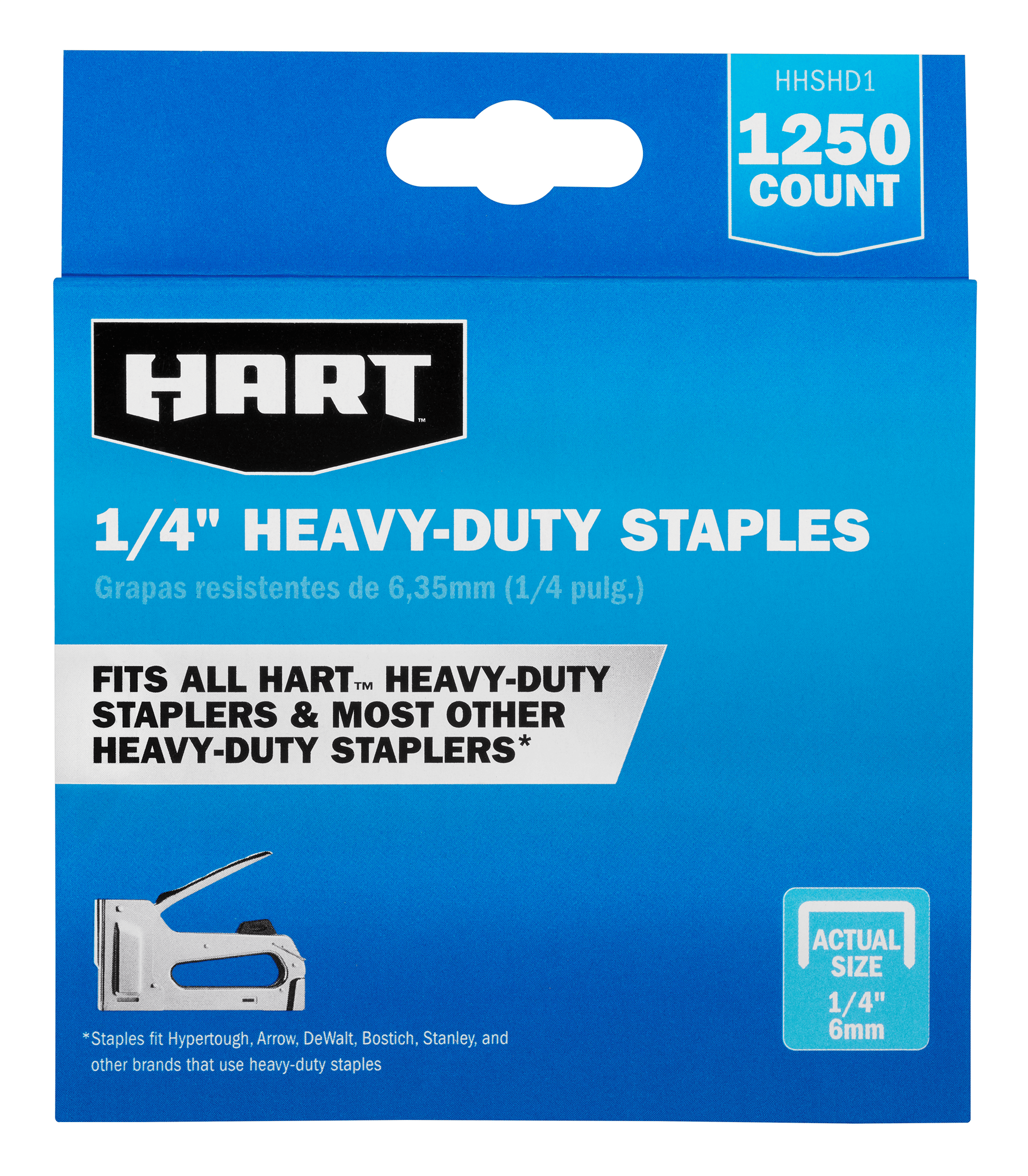 Our ¼” Heavy-Duty Staples are useful for quick fastening jobs. Made of stainless steel, these staples are ¼” long and come in a handy box of 1,250. Use them to secure carpeting pads, put down roofing shingles, staple upholstery as well as felt, house wrap, insulation, window screening, canvas, weather stripping—why the possibilities are endless. What’s more, our staples work with most manufacturers heavy-duty staplers and most other staplers. In addition to ¼”, they also come in other sizes, including 3/8”, 5/16”, ½” & 9/16”. If you find yourself with extra-thick stapling tasks on your to-do list, then HART’s Heavy-Duty Staples are your absolute best bet.