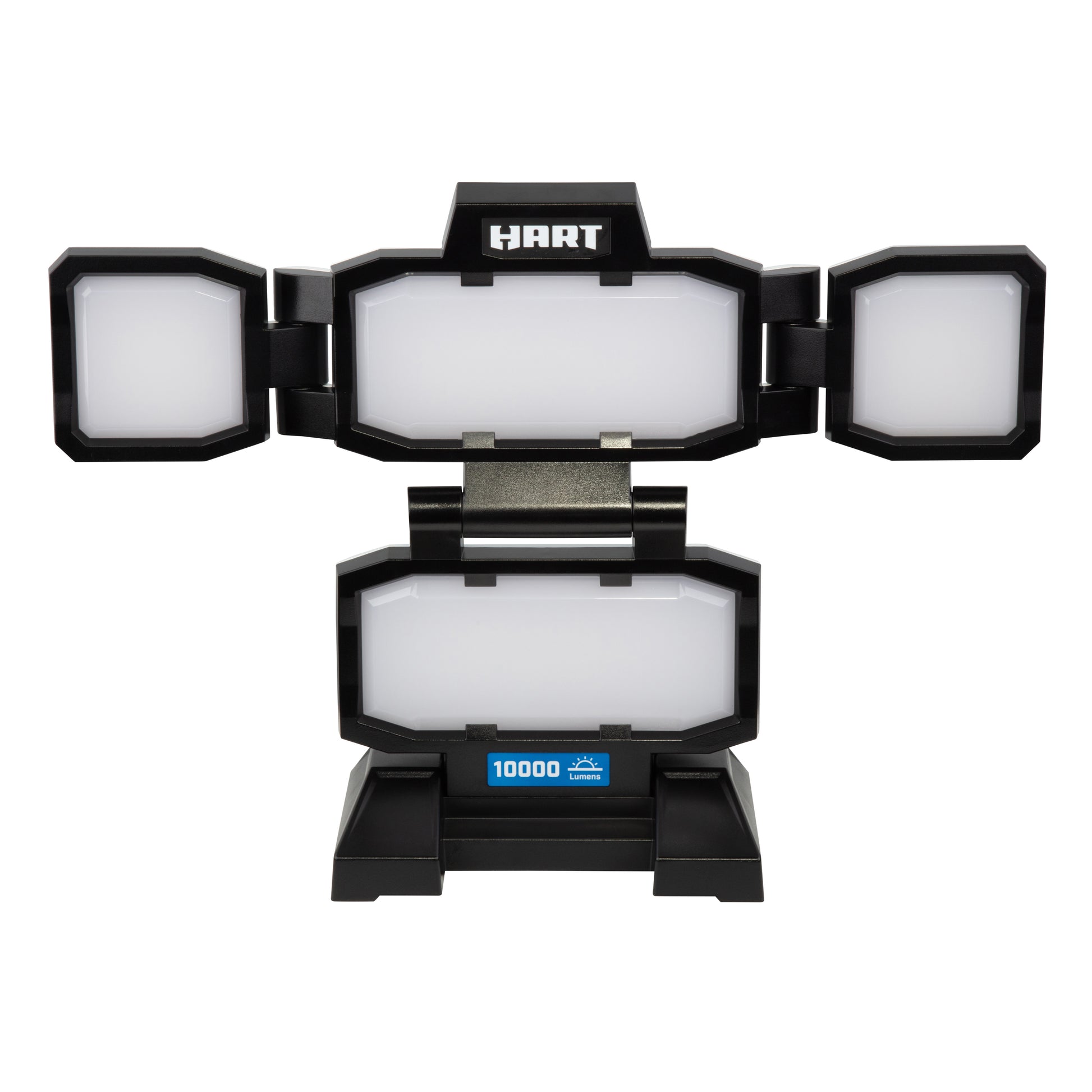 The HART 10,000 Lumen portable area work light is an excellent choice for lighting up workspaces. It features two adjustable wing lights that can rotate up to 220 degrees, and the top part of the light can angle up to 270 degrees, providing maximum flexibility to shine the light where it's needed. The work light also comes with three light output modes (10,000, 6,000, or 3,000 lumens), allowing you to choose the best option for your specific needs. The wing light heads can be moved to light up two sides of a room, providing excellent illumination for larger areas. The portable work light is easy to move around thanks to its integrated handle, making it ideal for workbenches, automobiles, and personal workspaces. The 5-foot heavy-duty power cord can be conveniently stored on the back of the light, ensuring that it stays neat and tidy when not in use. The HART 10,000 Lumen portable area work light is backed by a 2-year limited warranty, providing peace of mind knowing that you're investing in a quality product that will last. Overall, this work light is an excellent option for anyone looking for a high-performance, versatile lighting solution for their workspace.