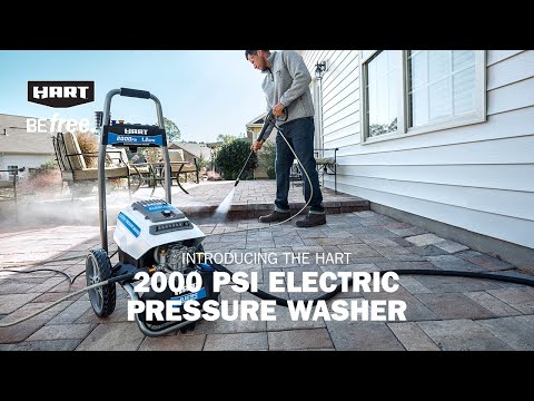 More pressure equates to more cleaning power. The HART 2000 PSI Electric Pressure Washer packs an impressive 2000 PSI pressure rating to go with 1.2 GPM—giving it a sizeable power advantage over other electric options. It comes with 3 quick-connect spray tips to help you tackle all sorts of cleaning tasks. It is also quieter, easier to maintain and better for the environment. The durable hand truck frame will hold up to years of rigorous use and the 10” wheels make it easy to transport. In addition, it comes with a 25’ non-marring hose, a 35’ GFCI electrical cord and a high-performance 13-amp motor for a variety of cleaning applications. Also see that PWMA certification label? It tells you that this electric pressure washer meets the industry standards for performance. What are you waiting for? Put HART’s 2000 PSI Electric Pressure Washer to work on siding, decking, and more. Includes: (1) Pressure Washer, (1) trigger handle, (1) spray wand, (1) 25’ hose, (1) turbo nozzle, (1) soap nozzle, (1) 15º nozzle, (1) quick start guide and operator’s manual.