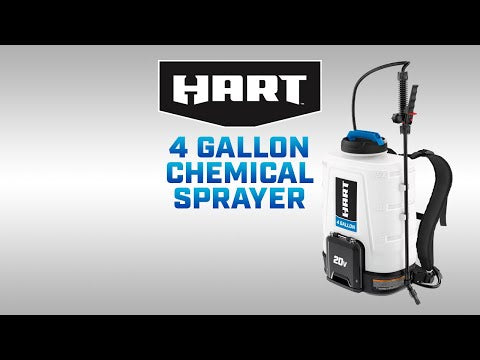 The HART 20V 4 Gallon Chemical Sprayer is the perfect tool for your medium-heavy duty spraying needs! The HART 20V 4 Gallon Chemical Sprayer provides maximum runtime with 45 gallons of spray per charge. The HART 20V 4 Gallon Chemical sprayer's padded shoulder straps provide enhanced user comfort during extended periods of use. Its quick access PSI control dial allows you to adjust to your desired pressure quickly and conveniently. The HART 20V 4 Gallon Chemical Sprayer and HART 20V Battery are covered by 3-year limited warranties.