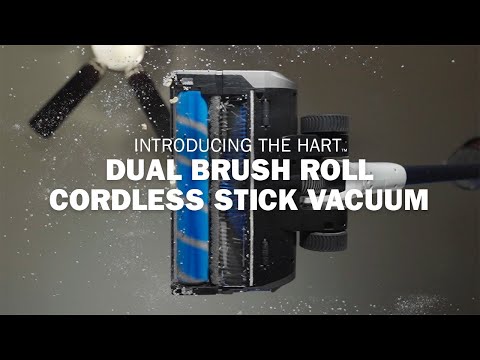 HART’s 20V Dual Brush Roll Cordless Stick Vacuum with Brushless Motor comes with new dual brush roll innovation that offers superior cleaning across all floor types while still offering 2X the power with no loss in suction. The plush microfiber brush roll tackles large debris and fine dust whereas the rear bristle brush roll lifts embedded messes. Still offering 45 min. of runtime, this cordless stick vacuum has the power to clean carpets, area rugs, and hard floor surfaces in up to 16 rooms with a HART 20V 4.0Ah Lithium-Ion Battery (sold separately.) Having trouble removing embedded pet hair that is deep in your carpet? Thanks to HART’s Brushless Motor Technology, you get a level of cleaning performance that takes care of all kinds of debris on all surfaces from floor to ceiling. HART’s 20V Cordless Stick Vacuum with Dual Brush Roll is designed to lay flat, so you can get to those hard-to-reach places like under couches and living room furniture. Equipped with Cyclonic Technology, the HART 20V Cordless Stick Vacuum with Dual Brush Roll suffers no suction loss with improved filter life for longer peak performance. Clean the messes in your car, on your stairs, or other above-floor surfaces by easily converting into a hand vacuum with the included crevice, dust brush, and micro crevice tool accessories. The wider floor head design makes cleaning quicker and easier while sucking up larger debris, like dry cereal messes. The floorhead includes integrated LED lights that help you see what you might otherwise miss, and aggressive nylon bristles with antimicrobial protection that lift embedded dirt. The tool-free roller bar release offers effortless maintenance for hair removal. Vacuuming on delicate area rugs? The unit starts in middle-suction mode which is great for everyday messes. Press +/- buttons to increase or decrease suction power. In addition to a large, easy-to-empty, easy-to-remove dust cup, the washable filter traps over 99.9% of dust and allergen matter. Keep your vacuum and accessories clutter-free with the included wall mount and battery dock that also provides a space to conveniently charge the battery after use. This vacuum also has a free-standing design allowing the vacuum to lock in place upright. Just plug in a HART 20V 4.0Ah battery (sold separately) and in 2 hours, the battery is fully charged and the LED turns solid. The HART 20V battery system allows you to interchange the same battery between all 20V HART products. It powers all HART 20V tools, outdoor equipment, automotive, and lifestyle items.