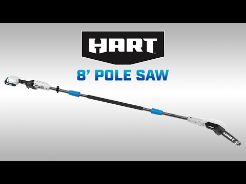 The HART 20V 8” Pole Saw is ideal for your light-medium duty pruning needs around the yard. The HART 20V Pole Saw extends up to 9.5 Ft. for areas that are difficult to reach and for increased ease of use. The HART 20V Pole Saw is equipped with an oil free function, requiring no bar and chain oil for ultimate user convenience. The HART 20V Pole Saw is equipped with on-board tool storage for adjustments on the spot, and rear comfort grip for user comfort during extended periods of use. The included HART 20V Battery is compatible with all HART 20V tools. The HART 20V Pole Saw and HART 20V Battery are covered by 3-year limited warranties.