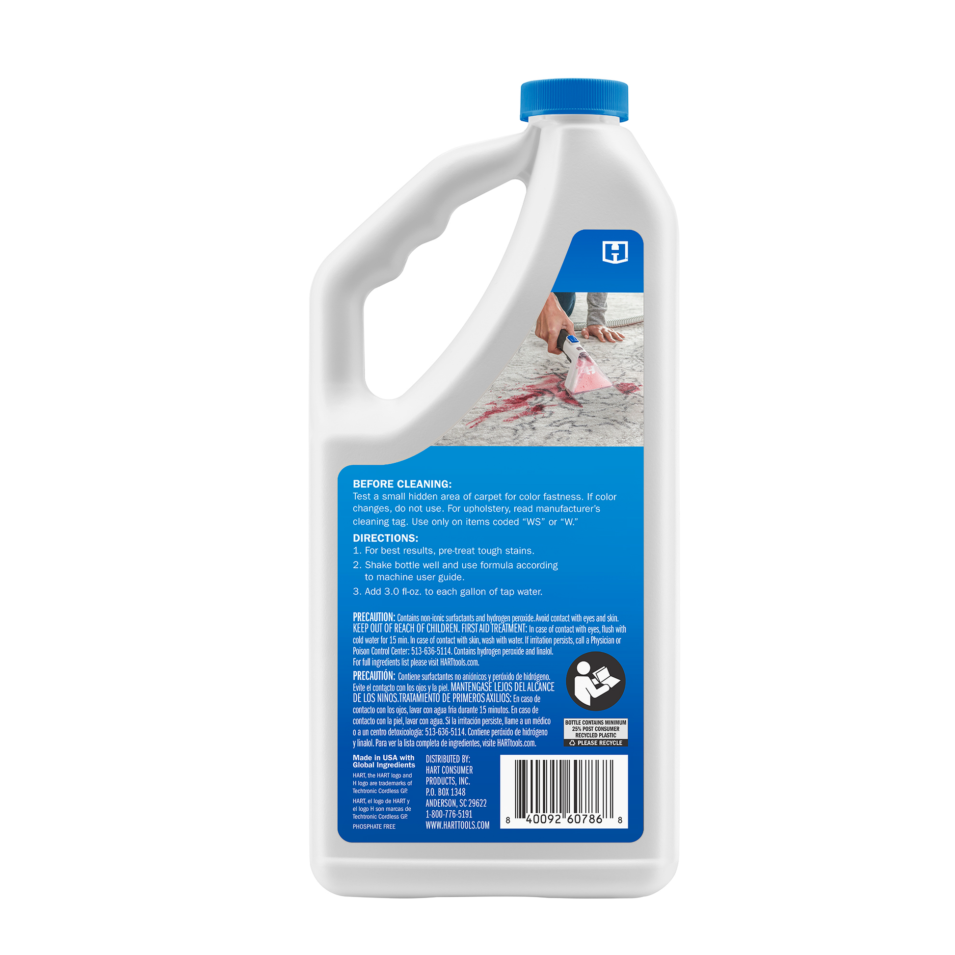 This Oxy Carpet Cleaning Formula is the perfect solution for cleaning colored messes such as food or pet stains and other colored liquids. It works with HART spot cleaners for guaranteed permanent stain removal. Use this solution to clean a variety of sealed surfaces, including carpets, area rugs, upholstery, and auto interiors. This formula is easy to use and highly effective, so you can be sure that your carpets will look just like new!
