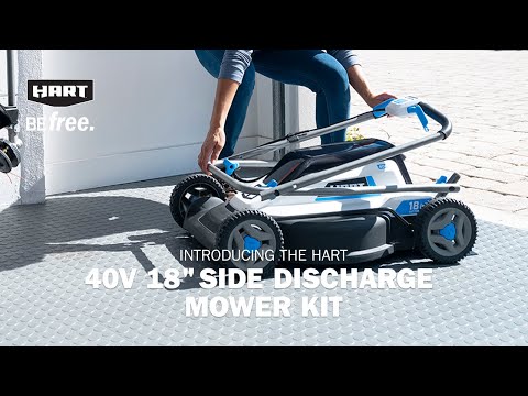 The HART 40V 18" Side Discharge Mower gives you the powerful and convenient lawn mower you've been looking for. This battery powered mower is perfect for those who want the option to mulch or side discharge, as it comes with both capabilities. There's no need to adjust the height of the blade manually - simply use the single point height adjustment to set your desired cutting range from 1.5"-4". When you're finished mowing, the collapsible handle makes it easy to store away. Plus, with its lightweight design, this mower is a breeze to use. And since it works with all HART 40V batteries, you can be sure you'll always have a charge when you need it. Includes: (1) 40V 18" push mower, (1) 6.0Ah lithium-ion battery, (1) 40V charger, (1) start key, (1) side-discharge chute, and (1) operator’s manual. The HART 40V battery in this kit powers all HART 40V outdoor equipment!