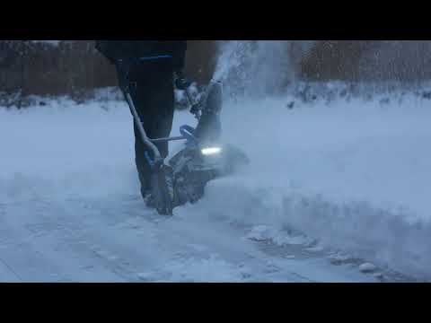 Take charge all winter with HART’s cordless 40V Brushless 18” Snow Blower Kit. We combine the convenience of cordless with a powerful brushless motor to deliver instant power at the push of a button. Battery-powered, you can clear snow up to 18” in width by 10” in depth without the hassle or maintenance of gas. Best when used on patios, decks, and paved driveways. Easily adjust the 180° directional chute to control where snow is chucked up to a 25’ throw distance. The 1.4 Watt LED lights increase visibility so snow can be cleared any time of day. (Plus it’s quiet with zero emissions.) When you’re done, use the folding handles to conveniently store the snowblower away. In addition to the snowblower, the kit comes with a 40V 6.0Ah battery, charger, chute, and directional assembly along with assembly hardware and operator’s manuals.