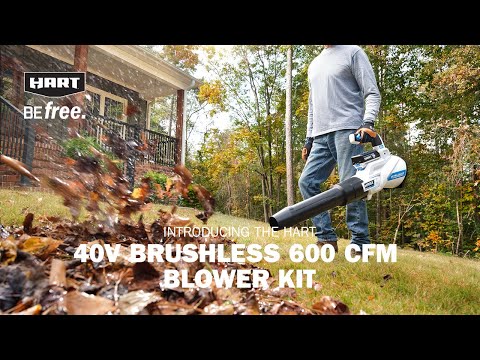 This 40V Brushless 600 CFM Blower will make fall cleanup so easy. This tool not only clears stubborn materials such as wet leaves, but also lifts and moves twigs, grass clippings, and more. And it does so quickly and efficiently. The turbo fan design provides 600 CFM and 155 MPH of maximum clearing power, while the variable speed trigger gives you total control. Lightweight, compact design provides the ultimate user comfort during extended periods of use. Plus, there’s no stubborn start-up cord to deal with. Just press the turbo button for maximum clearing power. Battery power also eliminates the fumes and mess that come with gas-powered blowers. Brushless Motor Technology delivers more power, longer runtime, and longer motor life. Plus, it’s cordless, so you’re free to work anywhere without tripping over or getting tangled up in cords. Finally, the Ultra-Quiet Technology makes it our quietest blower to date. The included 40V 4.0Ah battery is compatible with all HART 40V tools. Disclaimer: *compared to brushed blower
