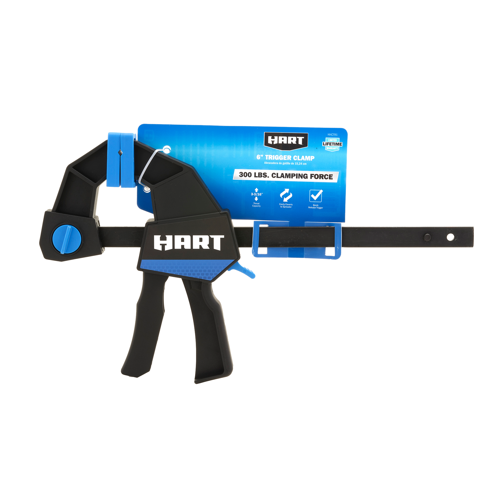 The HART 6" Trigger Clamp is the perfect tool for a variety of projects. With a 300 lbs. clamping force, it can handle even the most challenging tasks. The 3—3/16” throat capacity easily handles most projects, and the quick convert knob lets you easily change the clamp into a spreader. There is a quick-release trigger for easy use and removable jaw pads to protect your work surface. Lastly, over-mold grip for user comfort.