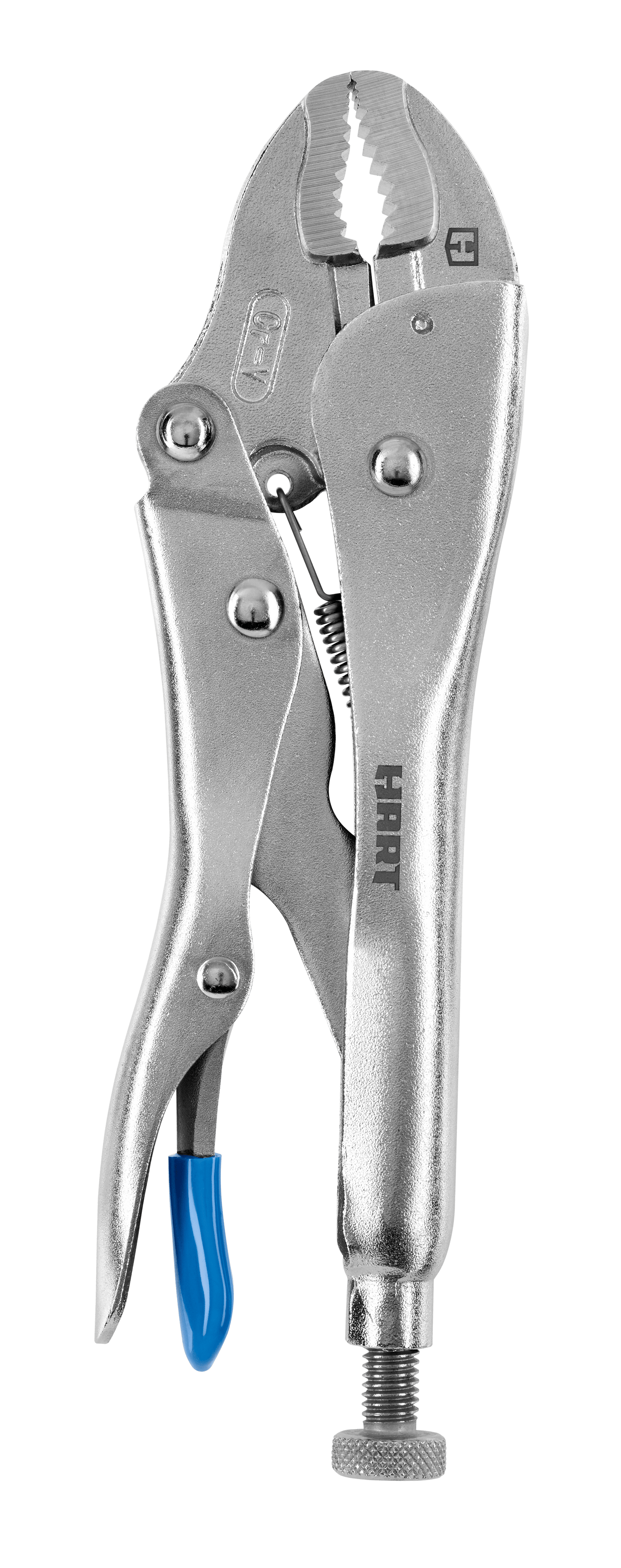 Sometimes you just need an extra pair of hands. HART’s 7” Curved-Jaw Locking Pliers are a handy solution for grabbing tightly on to all those places where you need it most. They’re called curved jaw, because they’re round-nosed with serrated teeth inside the jaw to clamp on to rounded objects. Ours are constructed from high-grade Chrome Vanadium Steel (CrV) for added strength and longer life of teeth. It also features hardened teeth for maximum gripping power and work best on anything cylindrical in shape such as nuts and bolts. In short, they’re durable enough to withstand the abuse of mechanic work. Another factor is size. These pliers have jaws that open up to 7”, which can be handy to have at times. It also has a quick release lock, which makes it an easy one-handed operation. Includes a limited lifetime warranty. You’ll find these curved-jaw locking pliers a must-have for any garage.