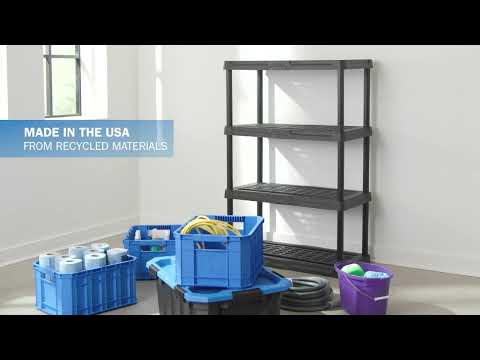 4 Tier 18" x 36" x 53" Heavy-Duty Ventilated Shelving Unit for all of your Storage & Organizational needs. This is a Plastic Shelf that is easy to assemble in minutes, no tools required. This shelf is made up of over 75% recycled materials with minimal packaging to protect our environment. Each shelf will hold up to 150 lbs. when evenly distributed across the shelf.