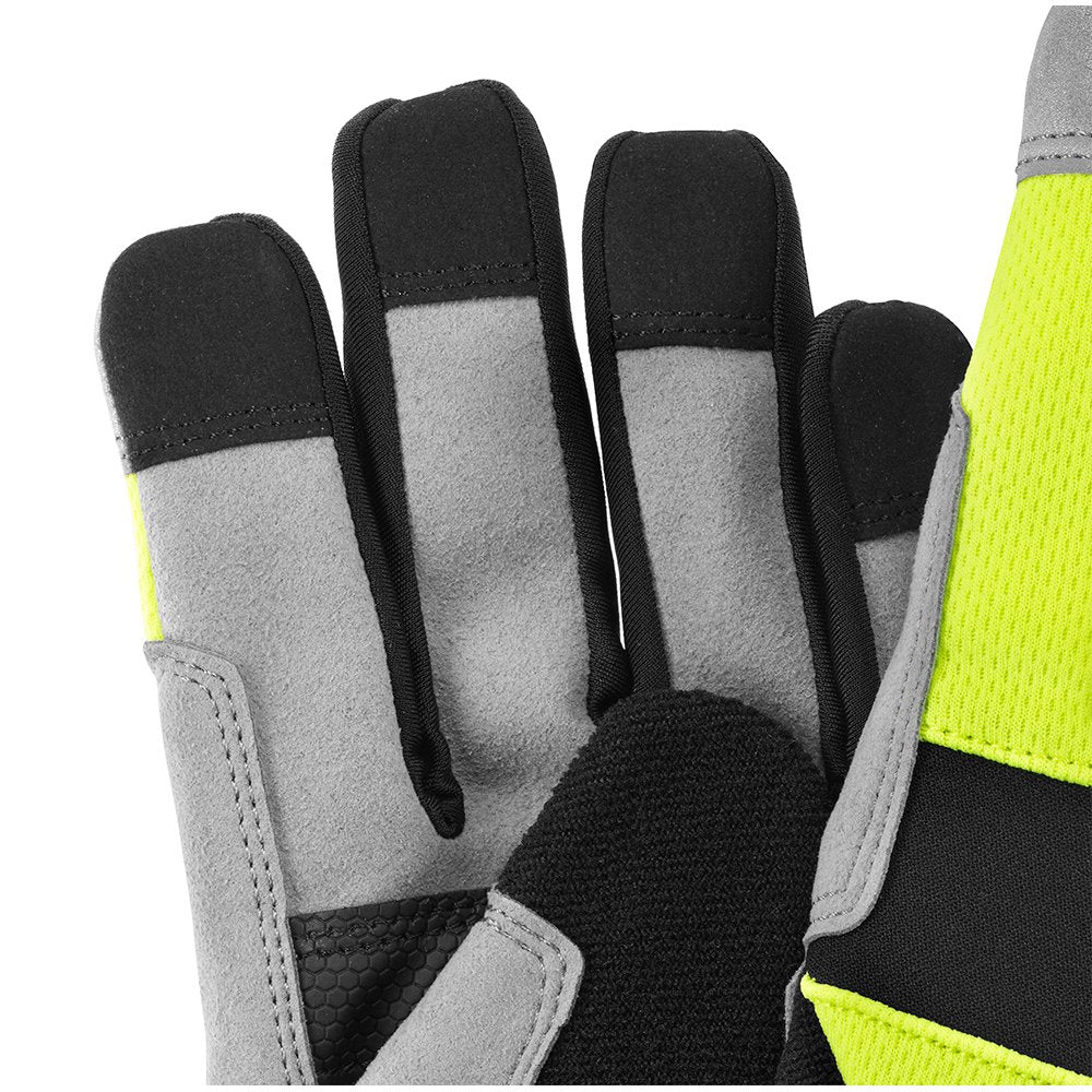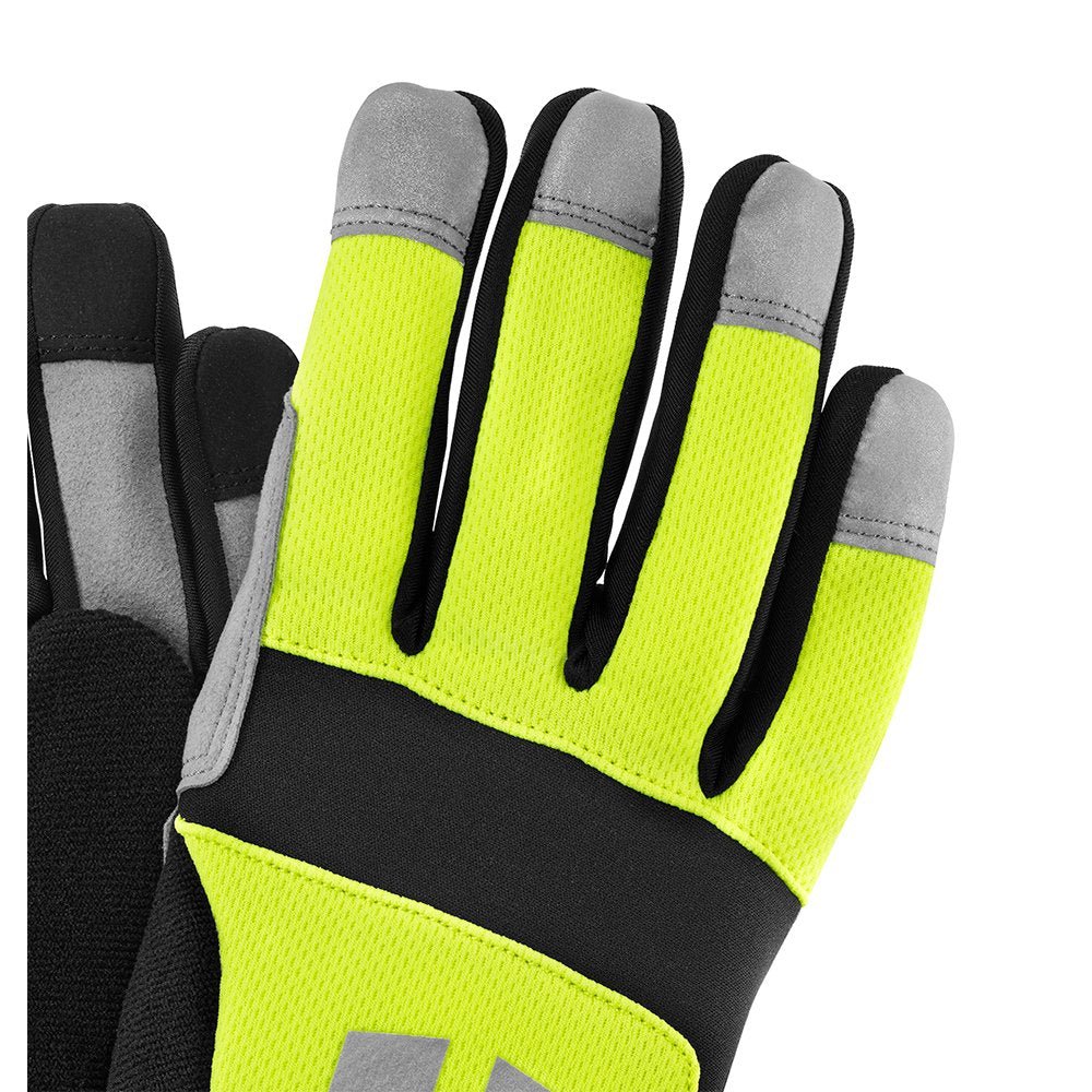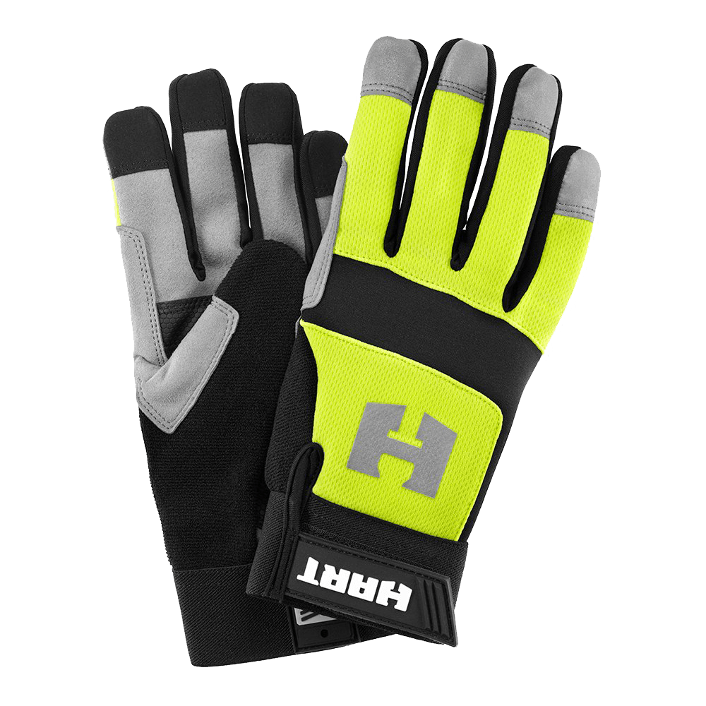 Made from synthetic materials, you’ll find our Hi-Visibility Utility Gloves comfortable whether you’re working indoors or out. On the back of the gloves, breathable spandex keeps your hands cool all day long—and on the palm, nylon for a better grip. Yellow fingers with reflective fingertips are visible when illuminated, making it easier to work in dark or low light conditions. The fingertips are also touchscreen compatible, allowing you to work on your phone or tablet without having to take your gloves off. (You may even forget that they’re on!) The built-in terry cloth sweat wipe helps you stay focused on the task at hand. We also know how important it is that your gloves feel good on your hands. That’s why we offer them in 3 sizes: M, L and XL with a velcro wrist closure for a secure fit. And when you’re done, you can toss them in the washer, because they won’t shrink when washed.